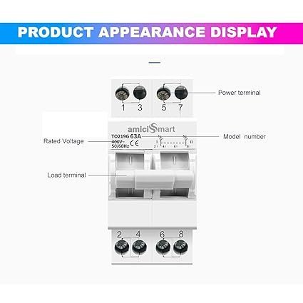 amiciSmart Dual Power Manual Control Transfer Switch, 63A (Single Phase)