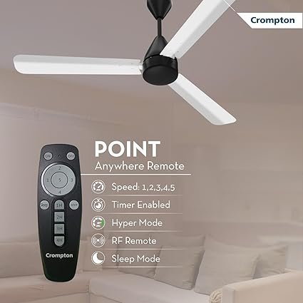 Crompton Energion Hyperjet 1200mm BLDC Ceiling Fan | Point Anywhere Remote Control | BEE 5 Star Rated Energy Efficient | Superior Air Delivery | Anti-Rust | 2 Year Manufacturer Warranty