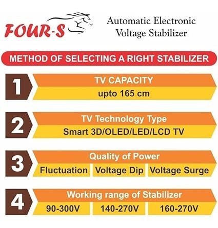 • Working Range :-FOUR -S 1 KVA Voltage Stabilizer for Television , Set-Top Box, Home Systems or Gaming consule ( Black );