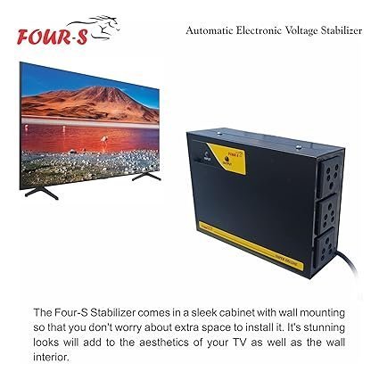 Be the first to review “FOUR-S Voltage Stabilizer FS-100 1 KVA for LED TV and Smart TV for 32/43/55/65/72 Inch Set Top Box and Home Systems and Gaming consule (Black);”