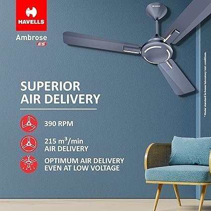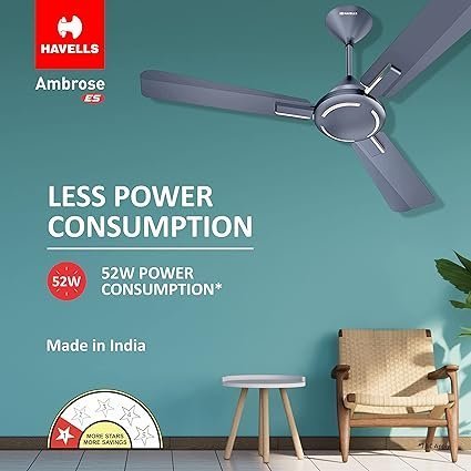 Havells 1200mm Ambrose ES Ceiling Fan|Premium Finish, Decorative Fan, Elegant Look, High Air Delivery, Energy Saving, 100% Pure Copper Motor|2 Year Warranty by Brand