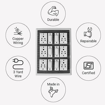 mos GABAN’E 6 Switch, 6 Socket 6A Extension Board Power Indicator | Multi Outlet Electrical Switch Board | Heavy Duty Cord