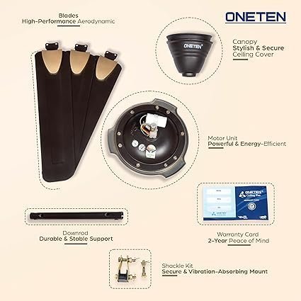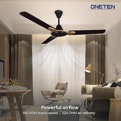 ONETEN BOUNCER Ceiling Fan | 1200mm BEE Star Rated Ceiling Fan for Home | High Speed 380RPM | Power Saver | 100% Copper Winding |